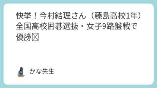 妙長寺こども囲碁教室 🎉快挙!今村結理さん(藤島高校1年)全国高校囲碁選抜・女子9路盤戦で優勝✨ 第20回全国高等学校囲碁選抜大会・女子9路盤戦において、藤島高校1年の今村結理さんが見事優勝しました!🏆✨「9路盤は初心者向け」と思われがちですが、実はとても奥が深い世界。一瞬のミスがそのまま勝敗に直結する、気の抜けない緊張感あふれる勝負でRead more... 2026.03.23 ブログ囲碁大会妙長寺こども囲碁教室