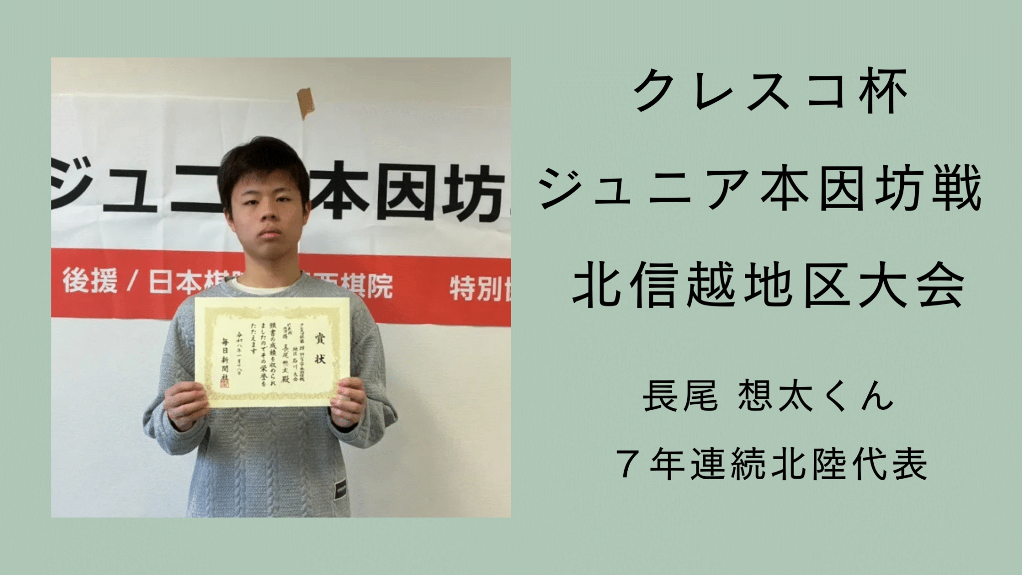 〜福井の長尾 想太くん、7年連続北陸代表に輝く! 全国優勝経験者として最後の全国大会へ〜〜